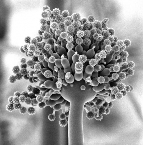This mold thrives in high temperatures, plenty of oxygen, and low water availability. Its spores are ubiquitous and commonly found in soil habitats, construction areas, stored grain, decaying vegetation, indoor air and dusty environments. These spores have resistance to such warm condition so they can also survive in soil during droughts. This characterstic makes it warm blooded animals pathogen. It enters into the body by inhalation and causes infections in any type of tissue, including brain, but the lungs are where it is most common. | |