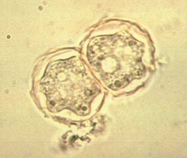 Cryptosporidium is a rare, opportunistic animal pathogen and C. parvum causes infection in humans. Asexual reproduction is common in these species and they form main infectious agent 'oocysts' by the sexual reproduction.These oocyst releases four sporozoites that are motile in nature, complete their entire biological cycle in single host and come out with the stool. These pathogens are ubiquitous and transmitted to man in various ways: man-to-man, animal-to-man, or from contaminated water, food or air. It can survive most environments for long periods of time due to its "hardy cyst". | |