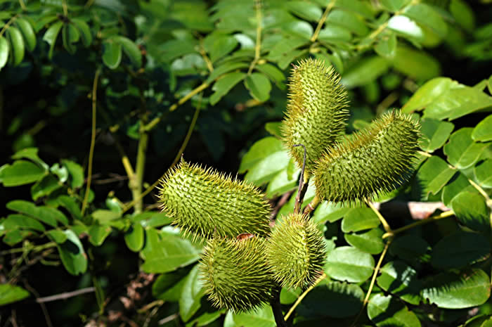| Description | A large straggling, very thorny shrub, branches armed with hooks and straight hard yellow prickles; leaves bipinnate, large, stipules, foliaceous, pinnae 7 pairs, leaflets 3-8 pairs with 1-2 small recurved prickles between them on the underside; flowers yellow, in dense long peduncled supra-axillary racemes at the top; fruits inflated pods, covered with wiry prickles, seeds 1-2 per pod, oblong or globulat, hard, grey with a smooth shiny surface. |